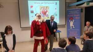 12.12.2018 -Cerimonia di consegna del defibrillatore al XXIII Circolo didattico di Triggiano. Nelle foto Riccardo Guglielmi con Babbo Natale, Francesco Pastanella Presidente di AMA Cuore Bari e la dirigente scolastica Immacolata Abbatantuono